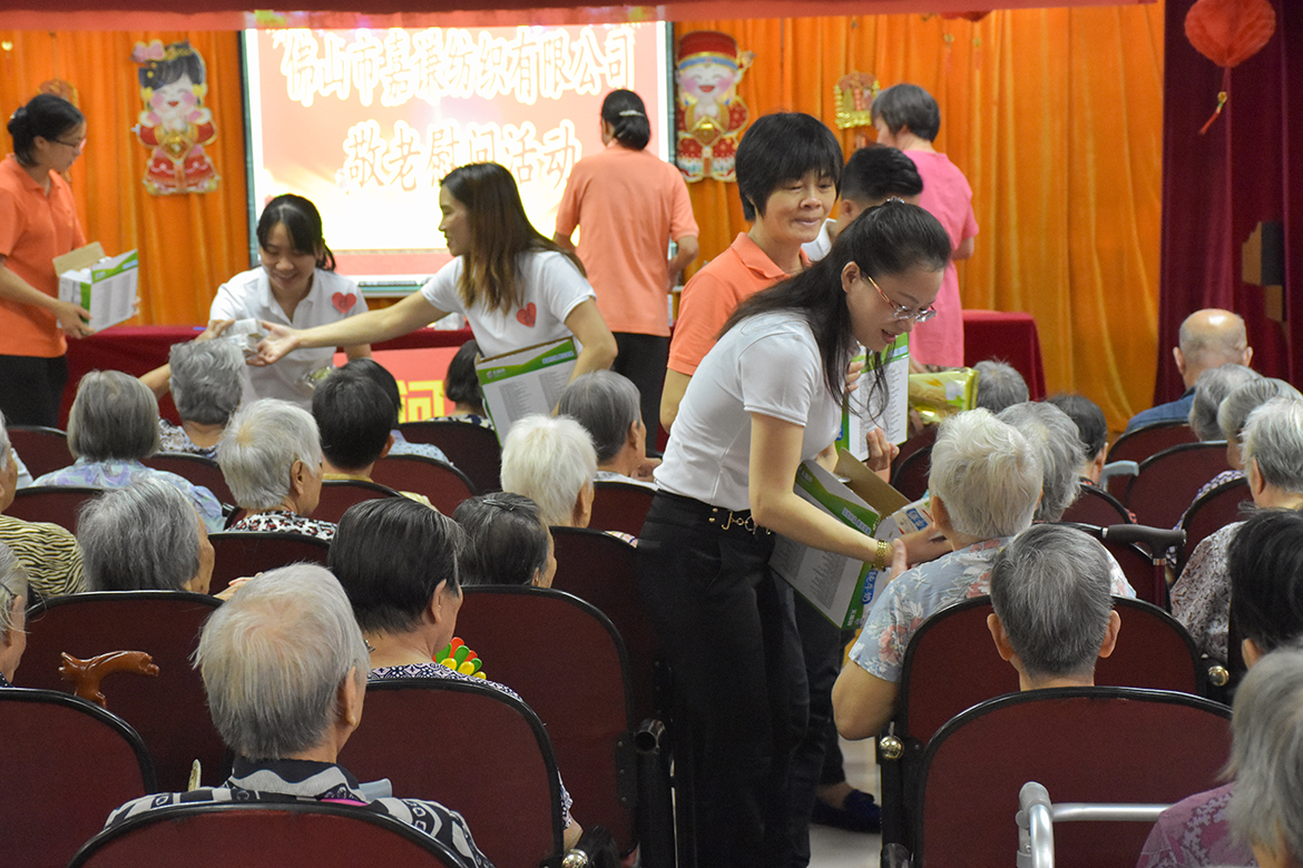 為大力弘揚(yáng)中國的傳統(tǒng)美德尊老愛幼,進(jìn)一步營造良好的企業(yè)文化氛圍,建設(shè)全民孝道文化,在中秋佳節(jié)來臨之際,佛山市嘉謙紡織有限公司工會(huì)主席黃小連、工會(huì)經(jīng)審委主任崔曉燕及其他工會(huì)成員等一行人于8月27日組織開展了敬老慰問活動(dòng),走進(jìn)張槎街道敬老院慰問老人,為258多名老人家送去了關(guān)懷和愛心物資。