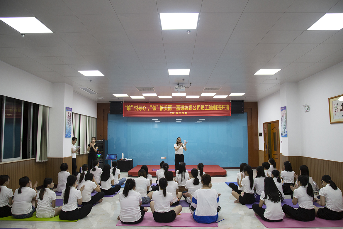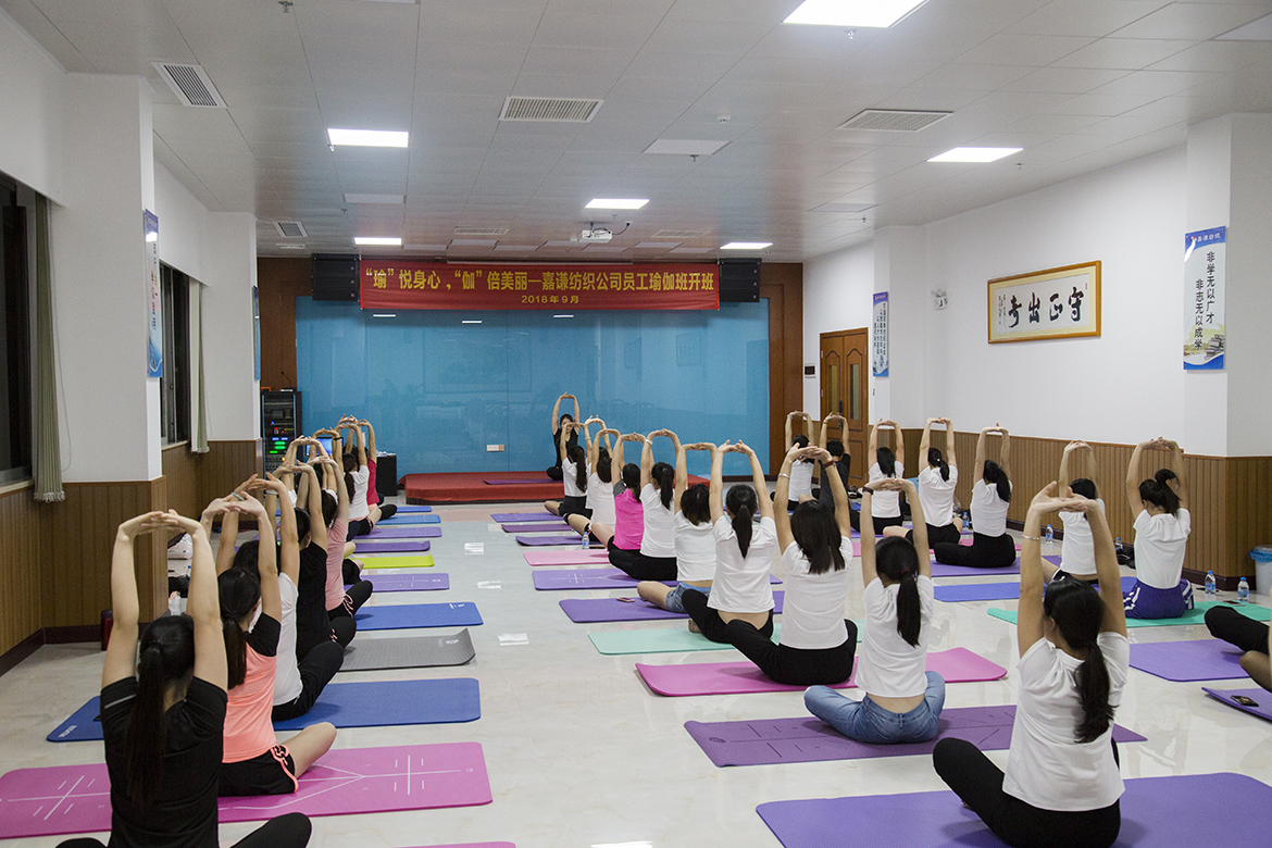 為豐富職工的業(yè)余文化生活,倡導綠色健康的活動方式,創(chuàng)造和諧向上的工作氛圍,在公司領導及工會的關懷、支持和積極籌備下,9月7日晚,在五樓職工培訓中心舉行了嘉謙紡織公司員工瑜伽班開班儀式,工會主席黃小連及其他工會領導出席了開班儀式,為瑜伽班開班致辭。