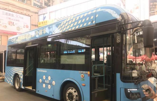 徒步的市民、企業(yè)員工在終點(diǎn)觀看氫燃料電池城市客車
