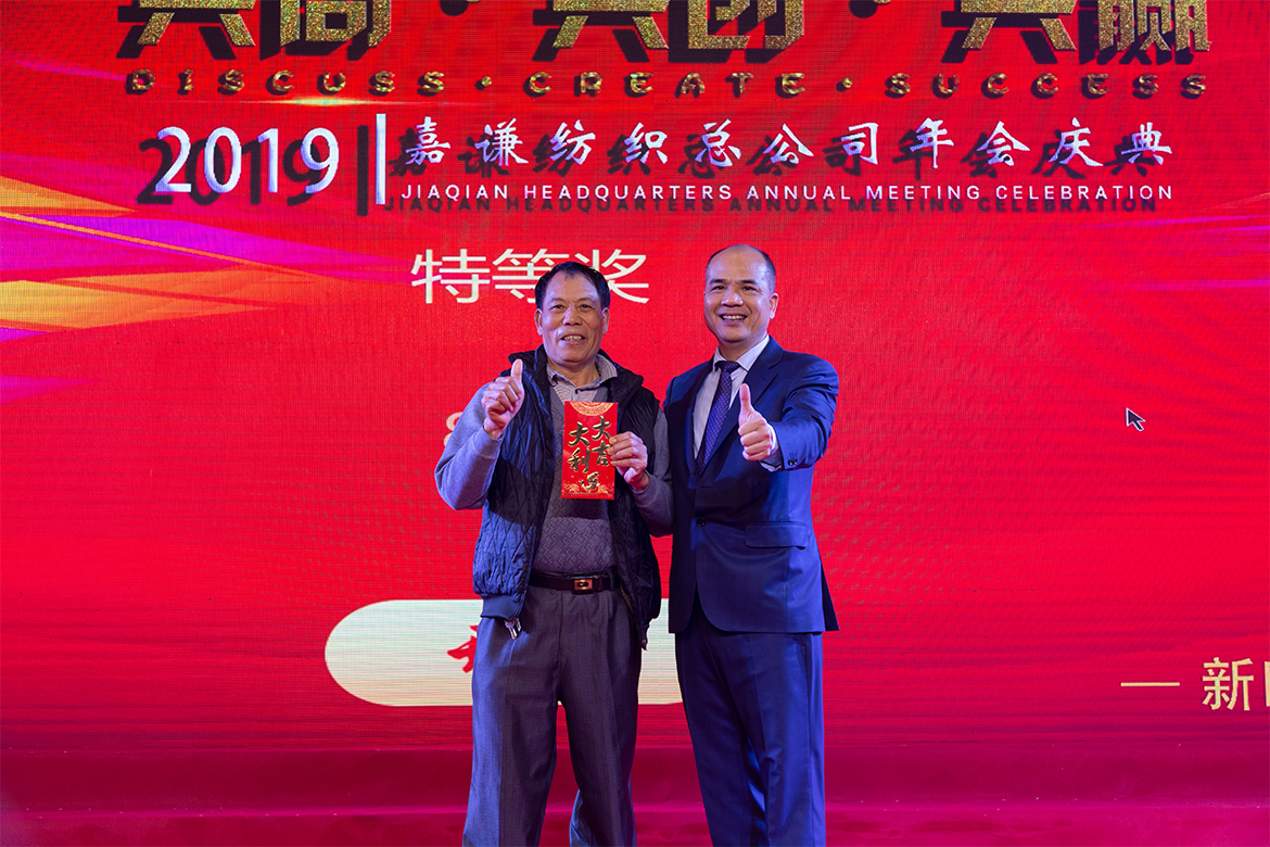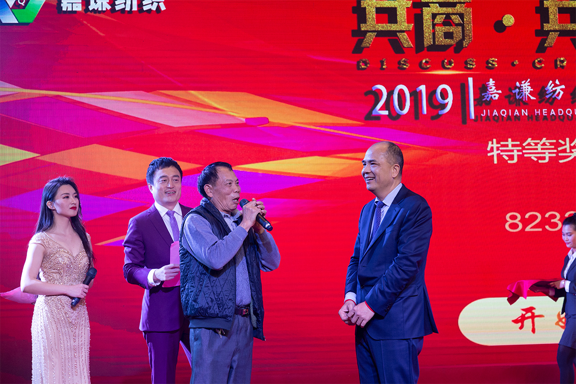 年會伊始,佛山市嘉謙紡織有限公司董事長蔡景輝先生對各位貴賓的到來表示誠摯的歡迎和衷心的感謝!感謝嘉謙家人們的努力與奮斗,感謝大家一直以來對嘉謙的支持與關懷。2018年我們秉承“嘉尚做人,謙實做事”的企業(yè)宗旨,取得了銷售穩(wěn)步增長,國家級高企穩(wěn)步推進。新的一年,翻開新的一頁,嘉謙在踐行“中國針織·嘉謙驕傲”的宏偉征途上永不停步。2019年,將以更加廣闊的視野和更加執(zhí)著的努力,向著更高更遠的目標健步邁進,再創(chuàng)嘉謙“百年紡企”征途上的新輝煌!
